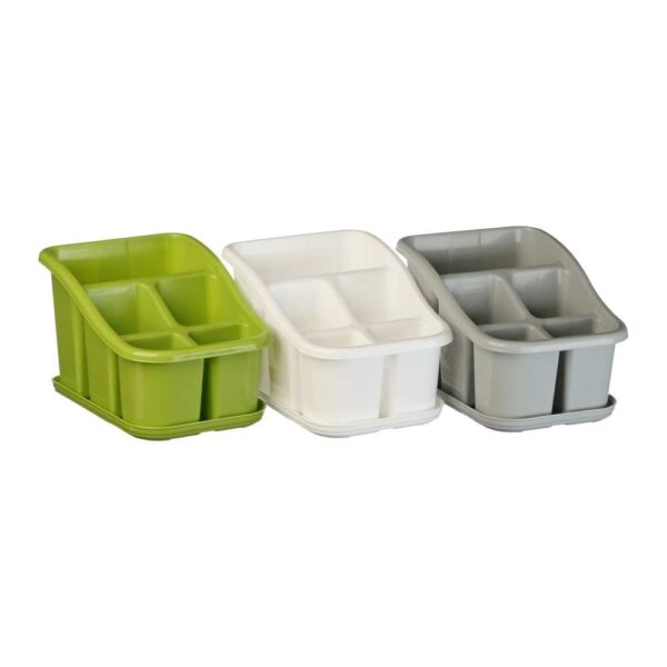 The cutlery holder is made of high-quality plastic, resistant to moisture and high temperatures. The holder consists of five sections for cutlery of different sizes and purposes. It can be placed both on a table, countertop, or on a kitchen cabinet. Suitable for home use and use in canteens, cafes, bars.
