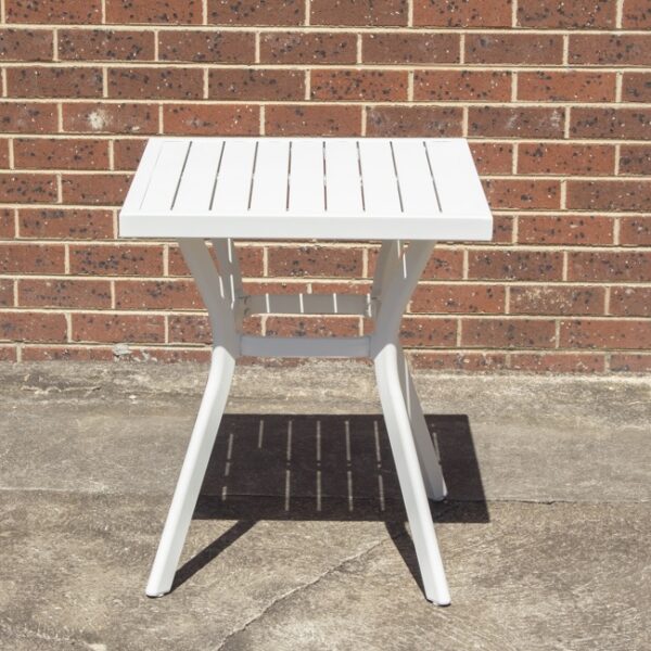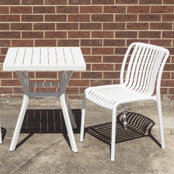A modern, minimally designed bistro table, perfect for any indoor or outdoor setting. Constructed with rust-resistant powder coated aluminium, featuring a slatted top the Daffodil Bistro table will fit perfectly in any home. Resistant to weather conditions making it ideal for outdoor areas too. Simply wipe it up to prevent any stains.