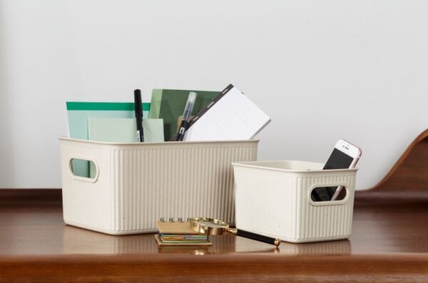 From toiletries and flannels to stationery and much more, this Baobab Storage container will keep your room organised. Suitable for storing all kinds of stuff including children’s toys, craft supplies, toiletries… the list is endless! With its simple yet attractive ribbed design and neutral colour, it’s designed to complement any decor and any room such as bedroom, bathroom, living room, study, kitchen or garage. The handles at either end make it easy to grab off a shelf when you need it. Available in four different sizes, the baskets handily nest inside each other when not in use.