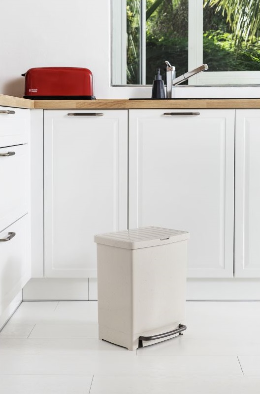 This recycling bin comes with a removable compartment for the organic trash bag. It also features a retractable pedal that facilitates opening of the lid. The bin comes with a frame that helps hold the bag in place. It is very hygienic and easy to clean.