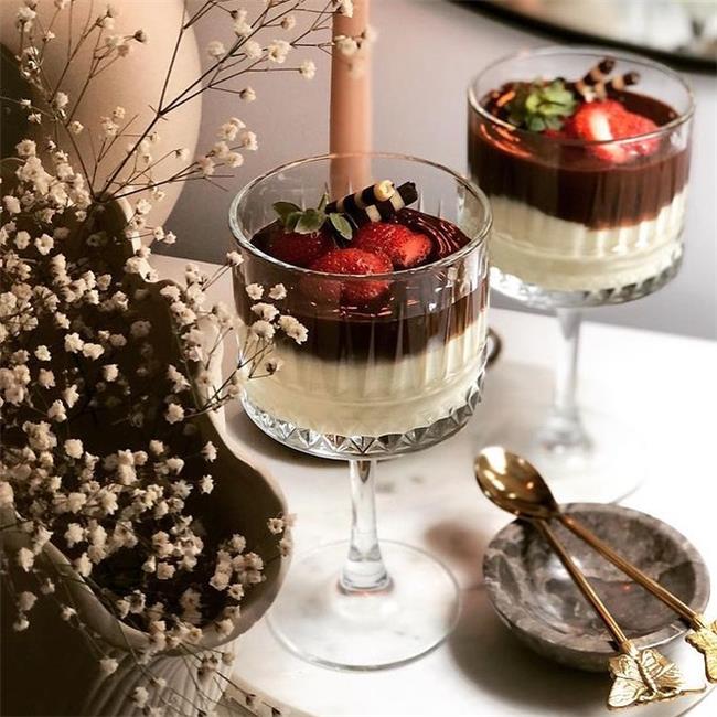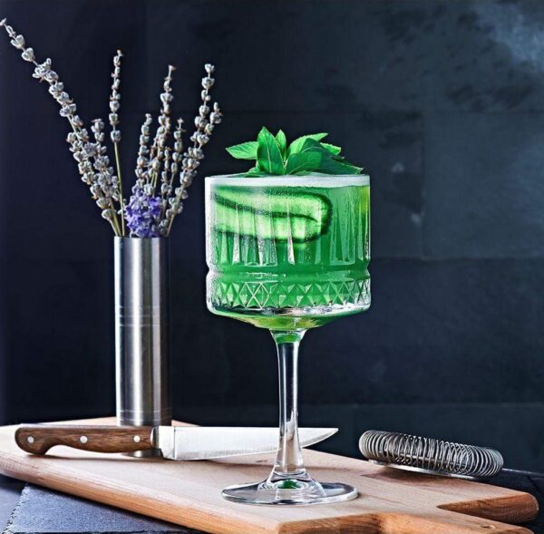The Elysia range of glassware is a highly modern range with a stylish look that should not be missing in any home or establishment. The glass has a small checkered pattern at the bottom that gives it a unique appearance. The glasses are made from high-quality and long-lasting glass. The large glasses can be used for several drinks such as cocktails, gin or even a simple layered dessert.