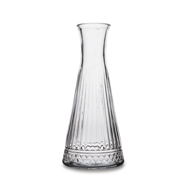 The Elysia carafe boasts an exquisite design, showcasing elegance and sophistication in its aesthetic. Its design and size make it an attractive piece for serving beverages on any table setting. This carafe offers a considerable volume, making it suitable for holding and serving larger quantities of beverages, such as water, juices, or wine. It provides functionality for various occasions, whether for everyday use on dining tables, for formal settings, or for special gatherings.