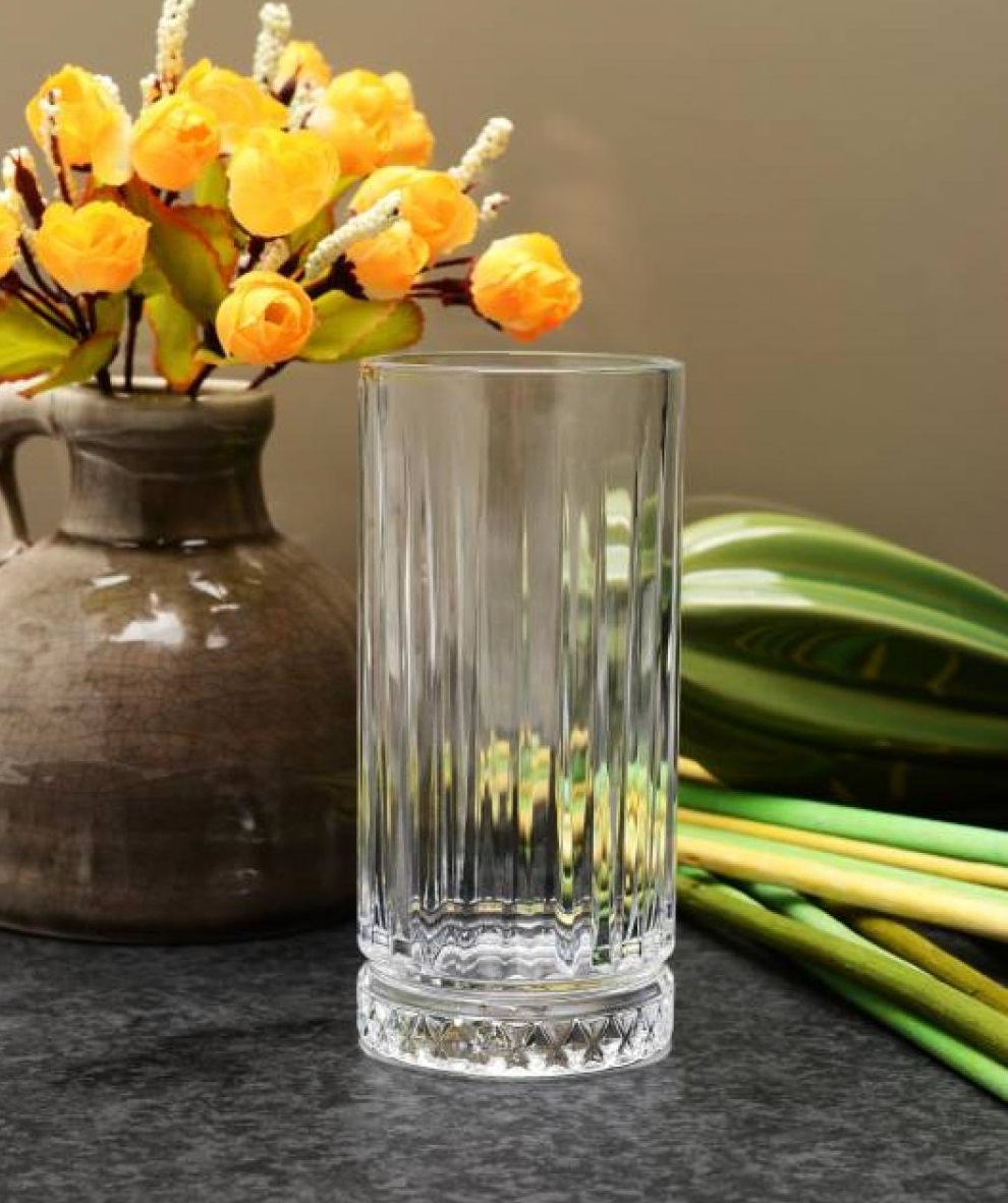 The Elysia range of glassware is a highly modern range with a stylish look that should not be missing in any home or establishment. The glass has a small checkered pattern at the bottom that gives it a unique appearance. The glasses are made from high-quality and long-lasting glass. The large glasses can be used for several drinks such as cocktails, gin or even a simple layered dessert.