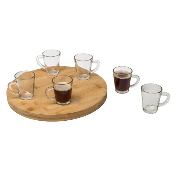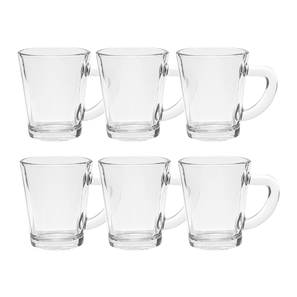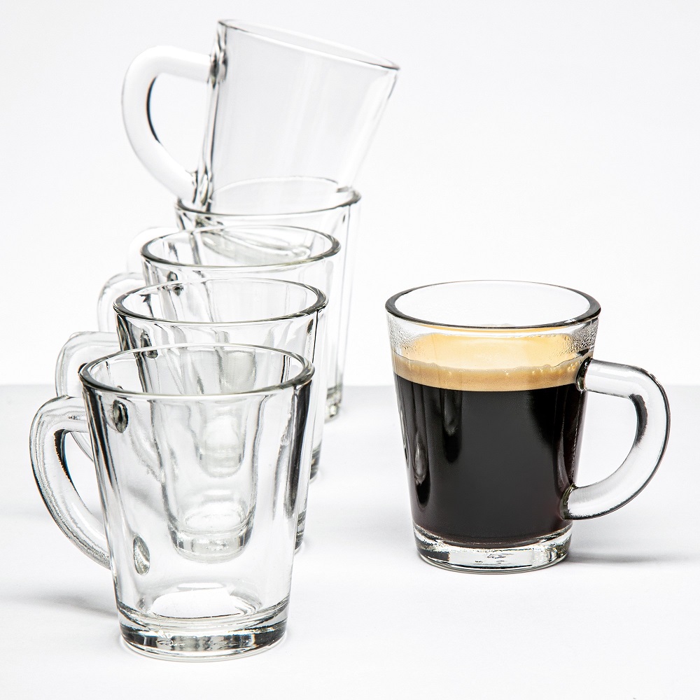 Serve your espresso in a transparent glass so that it is not only aromatic, but also looks elegant. The set includes 6 glasses made of thick and transparent glass with a handle.
