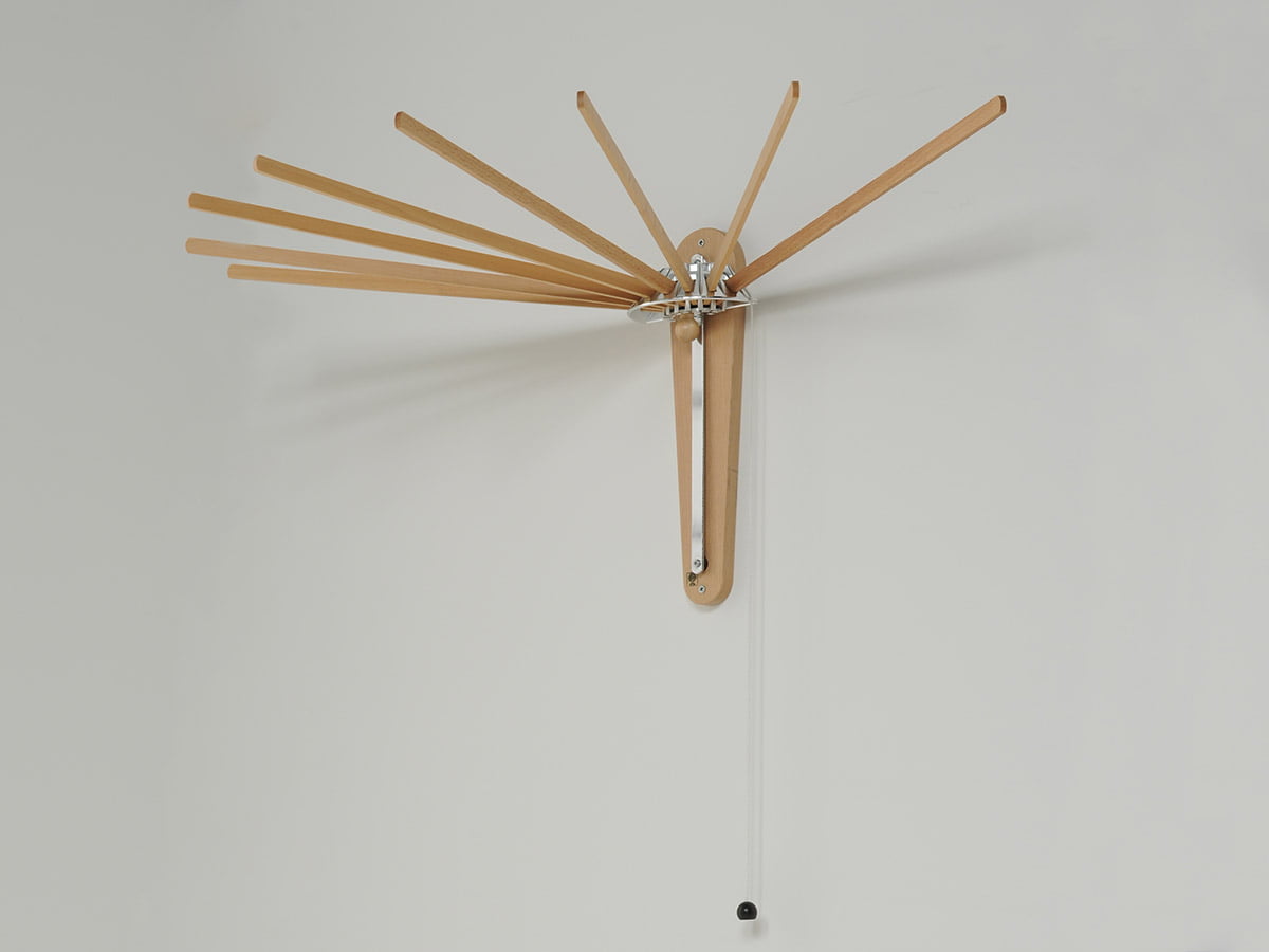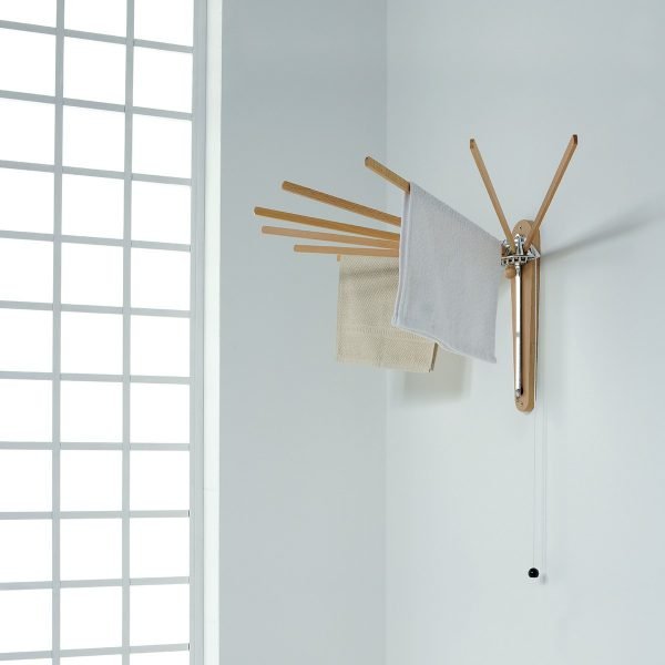 The Fan wooden clothes airer by Foppapedretti is a wall drying rack with a natural varnished solid beechwood frame. It has simultaneously removable foldaway rods. Ideal for use over the radiator or bath tub.