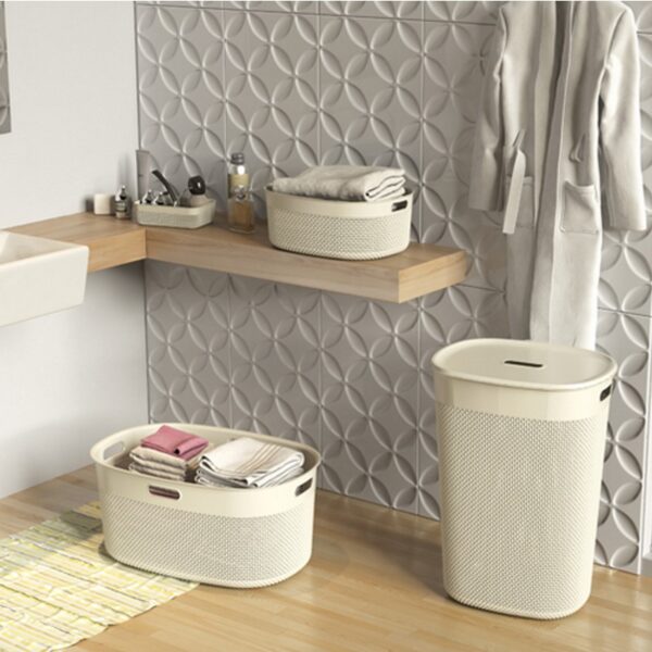 We offer a very elegant Filo Hamper Basket with a large volume, its sufficient size will suffice for normal home use. The basket is fitted with a lid and has handles on the sides for easy movement. It is commonly used for dirty laundry. The construction of the laundry basket has perforation holes which allows the damp laundry to “breathe” and does not become mouldy. The Filo Hamper Basket is not only a functional element for your bathroom or laundry but is also a very stylish accessory.