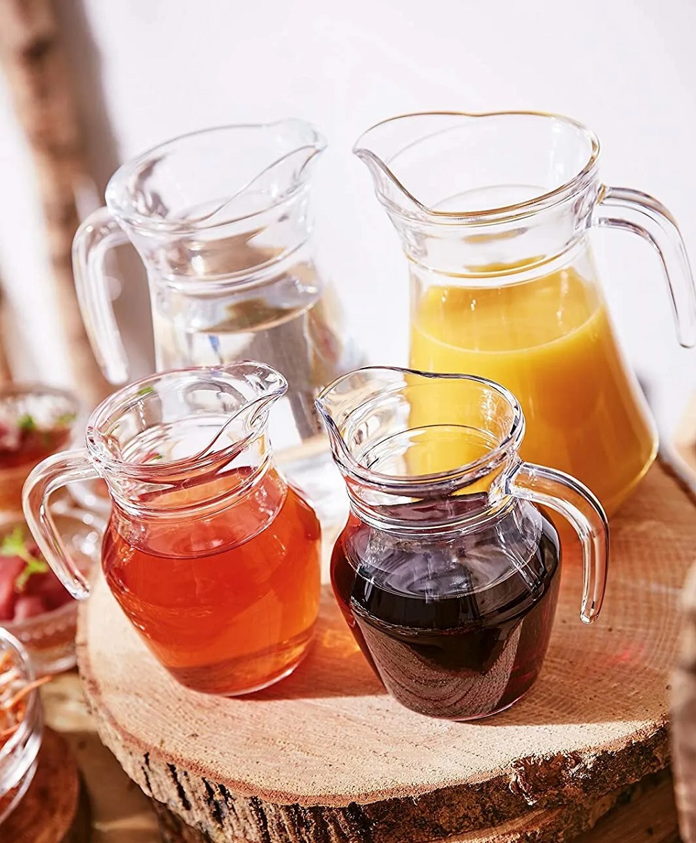 Made from high quality, thick glass which is extremely hygienic and durable. The jug features a comfortable handle, which will provide a secure and comfortable grip during use and a contoured spout which protects the content during pouring from unexpected splashing to the sides. The jug is thermal shock resistant and may be used in a dishwasher. Not suitable for boiling water.