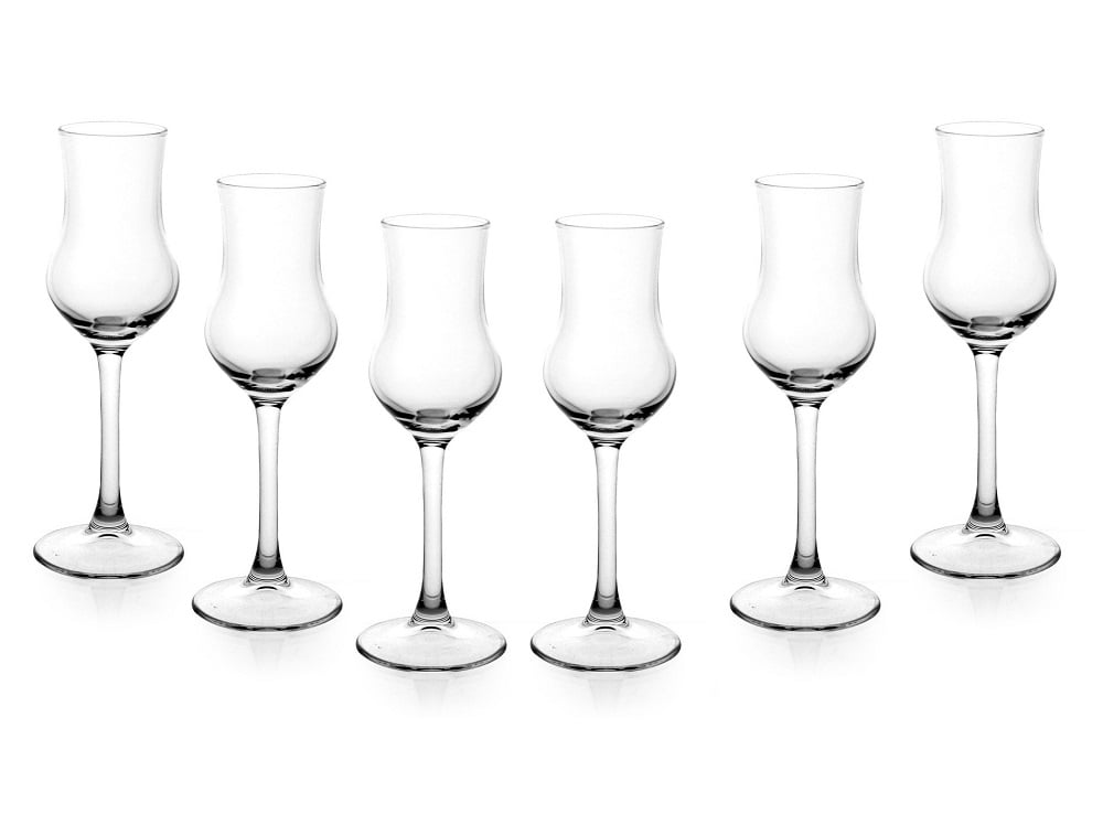 The Grappa glass features a curved, bulbous bowl to allow room for the aroma and flavour. Use this glass to serve grappa, brandy, port, sherry, or water in restaurants, hotels, bars, catered events, and banquets. High quality and durable glassware.