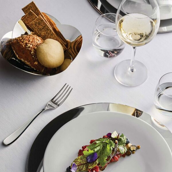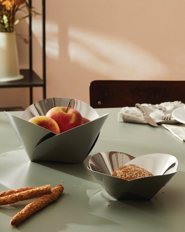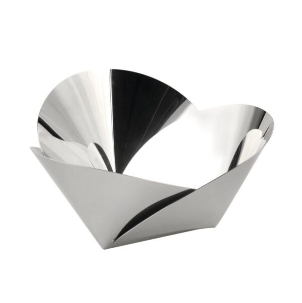 A design that reveals young Australian designer Abi Alice’s interest in mathematics and geometry, translated into sculptured three-dimensional forms by cutting, folding and curving sheet steel. The Harmonic basket joins the Resonance centrepiece and Pianissimo bread basket created for Alessi.