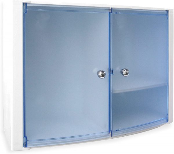 Made from solid plastic and features 2 compartments with doors. The cabinet is so strong and robust that it can withstand heavy loads up to 8 Kg. It is very easy to assemble and any mounting materials needed are included in the package, you don’t need to worry about anything. It is also possible to fix the cabinet without drilling, by using a glue and fix kit.