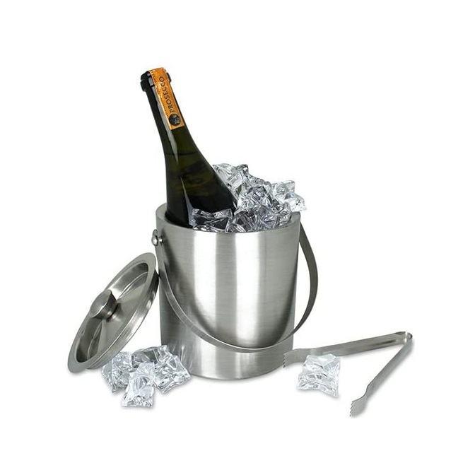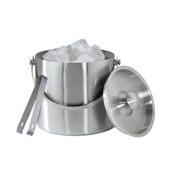 Tired of ice cubes melting so quickly? This double walled, stainless steel ice bucket keeps the ice cubes intact for longer. It comes with a stainless steel lid and tongs.