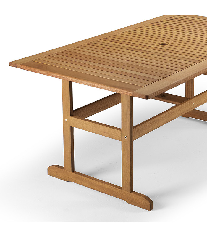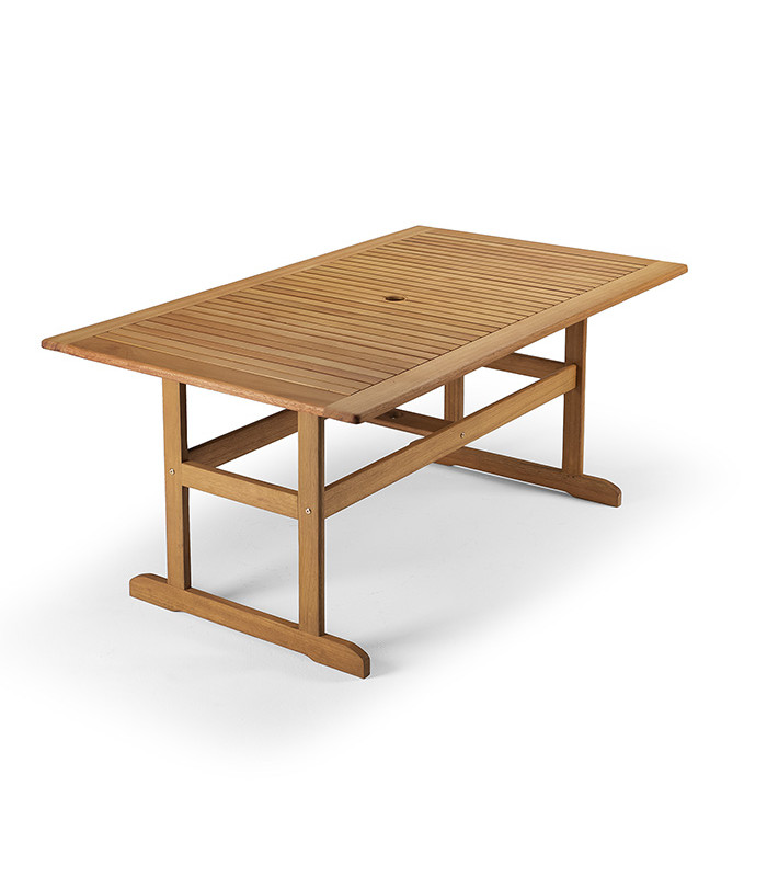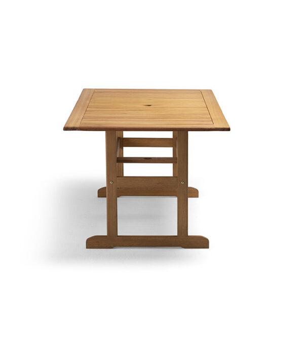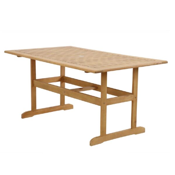 The stunning Kimberly Dining Table is ideal for intimate outdoor entertaining. Crafted from environmentally friendly eucalyptus wood the table features an elegant design with a lrectangular shape for a cool and casual setting. Eucalyptus wood is environmentally friendly, easy to work with and incredibly practical. This makes it an ideal material to serve as an outdoor table. The oily wood means it naturally combats the effects of moisture and aims to be a part of the family for decades.