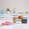 The Tatay jars are made of strong & durable polystyrene, are fully transparent and resistant and 100% BPA free. The canisters have a seal which is airtight, perfect for storing food for long periods and thanks to this seal they are also odour proof. The jars are stackable therefore they take less space in your kitchen. Ideal for coffee, sugar, cereals, pasta and much more.