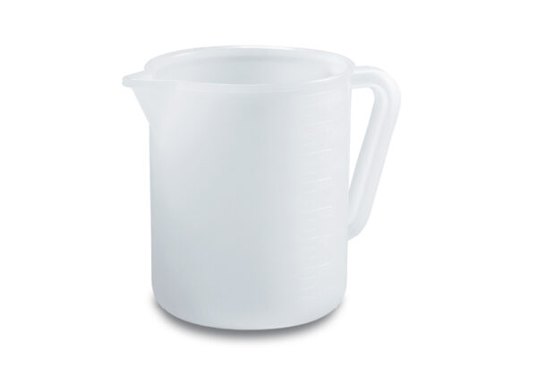 This clear white plastic measuring jug has various uses. It can be used with liquids or dry ingredients as the measurements are clearly marked and it can also be used in laboratories as it is made of high quality material which is suitable for both high and low temperatures. It is easy to clean and is freezer, microwave, dishwasher and food stuff safe.