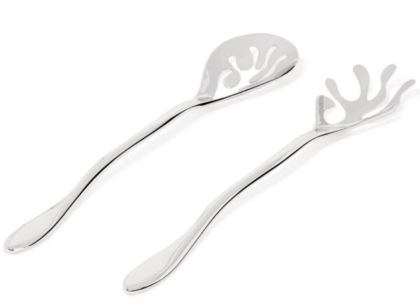The ‘MEDITERRANEO’ salad serving set is a sleek and stylish addition to your utensils collection, these will look great serving up salad at your next dinner party. The head of the fork mirrors the cut-out section of the spoon, both resembling swirling seaweed.