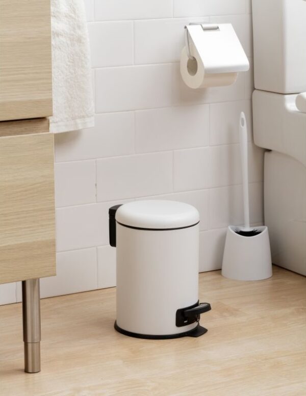 Bathroom bin with pedal opening for greater comfort of use. It has a removable inner bucket with a handle, in this way, you can do without the use of plastic bags inside, and empty the content once full. On the outer back of the bucket, it has a folding handle, to be able to transport it without problems. The lid closing system is a soft close system. Made of stainless steel with a protective polypropylene base, BPA free. Very easy to clean.