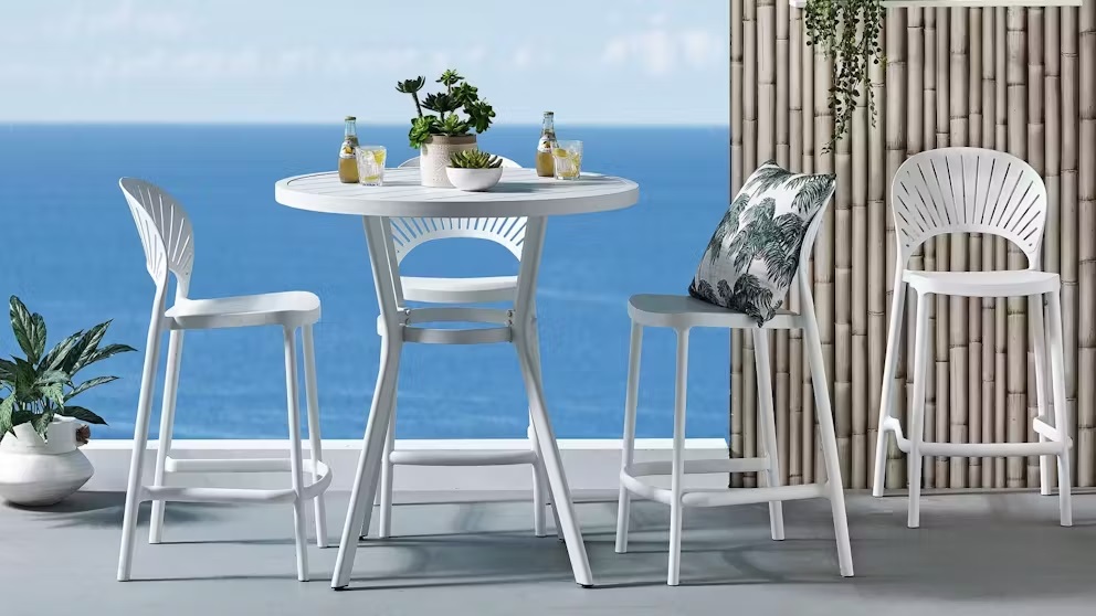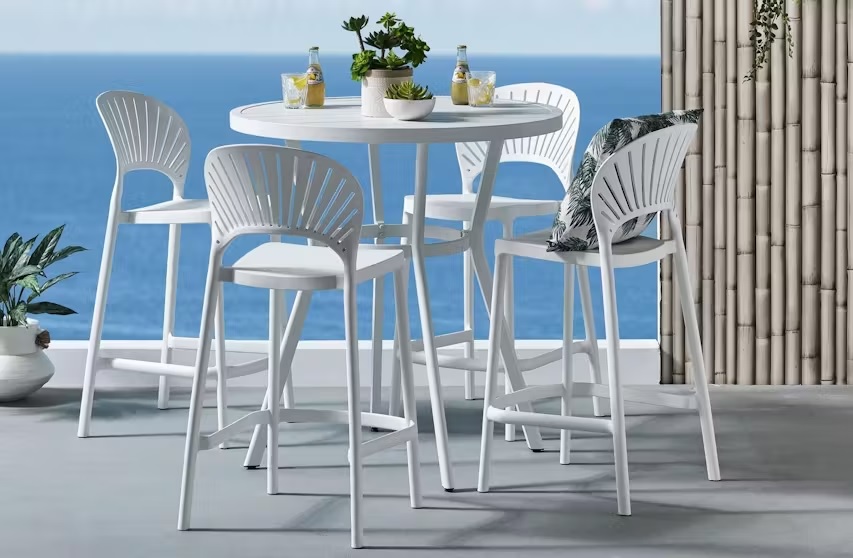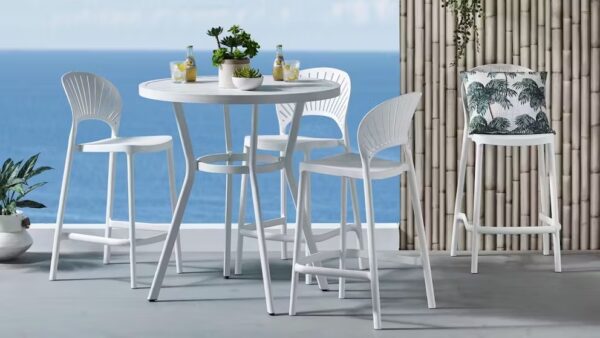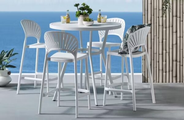 Strike up good conversation with friends at home with the simple charm of the Passeri 5-piece bar set. The bar table is made from lightweight, rustproof and low maintenance aluminium. It comes paired with the comfortable Passeri resin cut-out bar chairs that are durable and easy to clean. Offering a gorgeous fanned aesthetic with its open air chair back design, make it the perfect addition to any space in your home. The bar chairs are made from UV treated polypropylene for durability even when used outdoors as it is weather resistant with minimal maintenance.