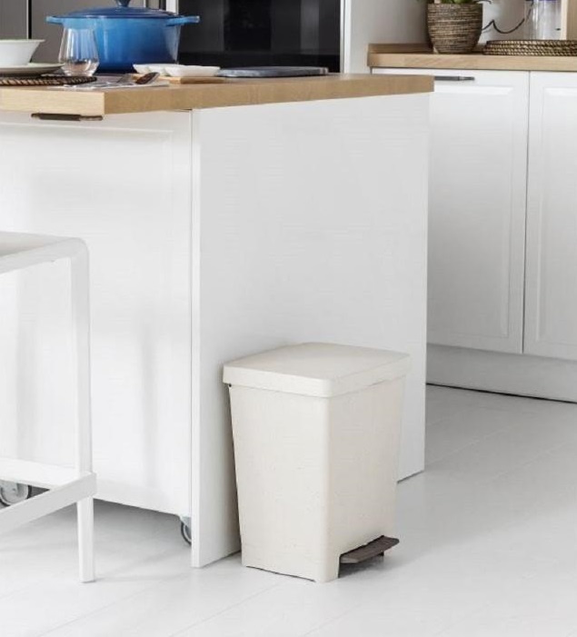 Dent-resistant plastic, robust and easy to clean. With it’s 23 Lt capacity it is suitable for waste separation.