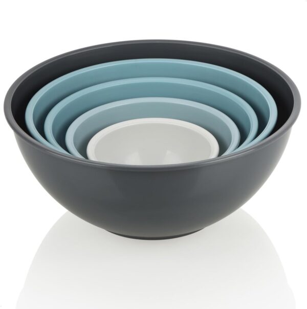Are you still looking for bowls to mix dough, salads or serve snacks? This 5 piece lightweight bowl set is the perfect solution for all your needs. Ideal for fruit, salad, melting chocolate in the microwave or as a mixing bowl! The set of bowls in 5 sizes meets all the challenges! The round containers are both shatterproof and drop resistant, making them ideal for everyday use. Also perfect for households with children! The lightweight mixing bowls in different sizes are made of sturdy BPA-free plastic, which is food safe and heat resistant suitable for use in microwaves. After use, each of the bowls can be cleaned in the dishwasher and then placed inside each other to save space!