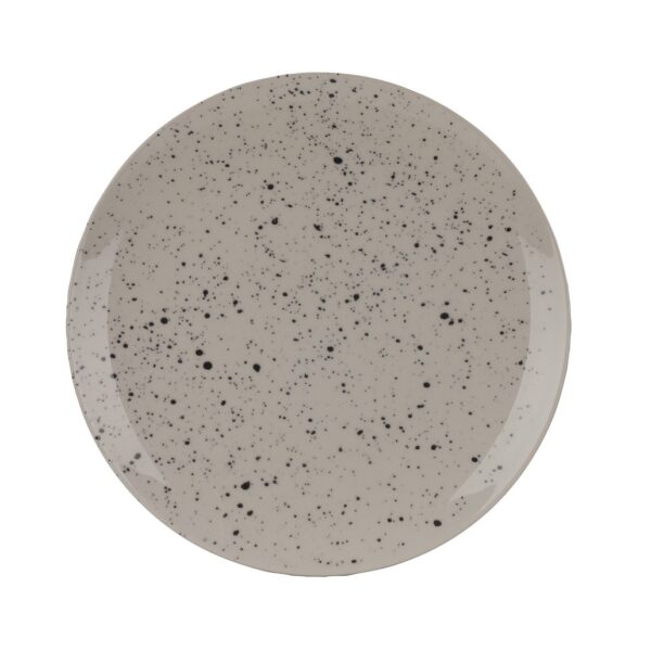 A speckled dinner plate made of glazed stoneware. Practical and stylish, perfect for serving all types of food.