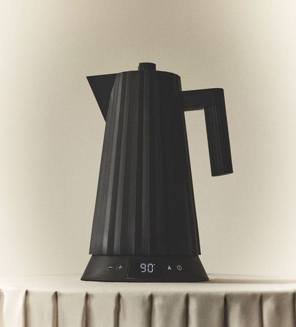 The new Plisse Electric Kettle from Alessi features a convenient temperature control. This new precision kettle boils the water at exactly the desired temperature. When the temperature is reached, the kettle gives a signal. The kettle is easy to open and close, can be quickly removed from its base and is equipped with an anti-scale filter. The kettle is features a safety protection against dry boiling thanks to the safety mechanism, the base of the kettle is thermally insulated, so even if the water has reached boiling point, it can be safely placed on any surface.