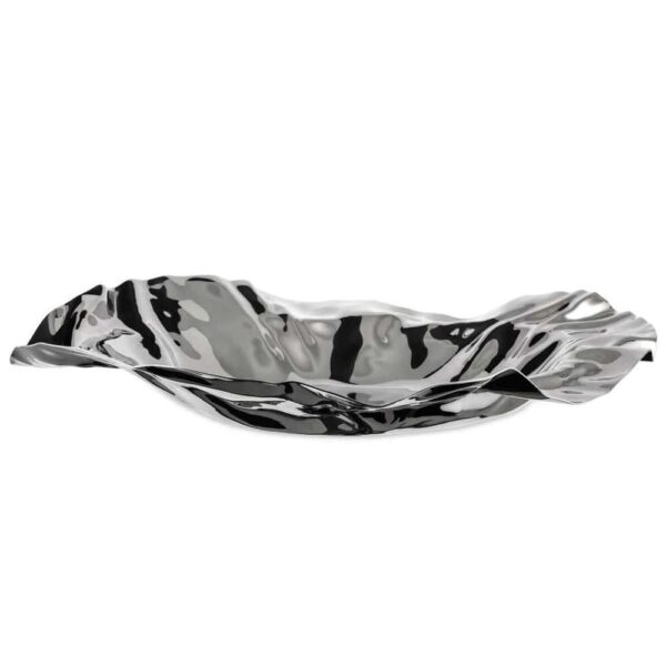 Clotet, fascinated by the capricious ripples of a silver paper tray, reproduced the effect in a lucky small series of trays and baskets, in which the edge ridged is obtained with the complex technique of cold forging in a single operation.