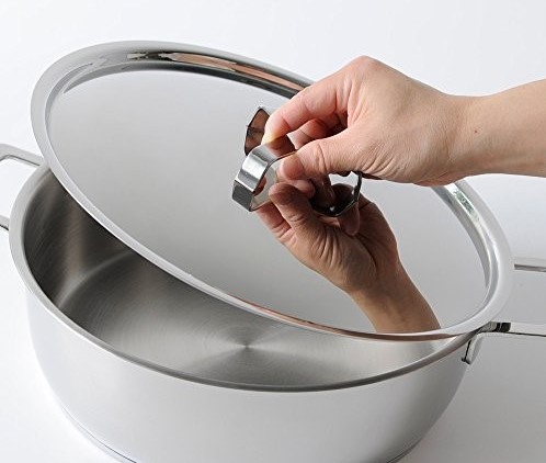 To suit the various sizes of pots, the lid of Pots&Pans series is available in several sizes. Made of stainless steel 18/10 and characterised by a linear design that distinguishes the entire collection, the lid contains a small masterpiece of functional innovation, this being the knob which allows you to lift the lid with the kitchen spoon.