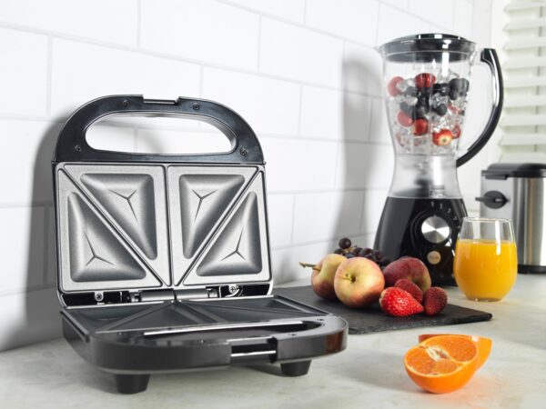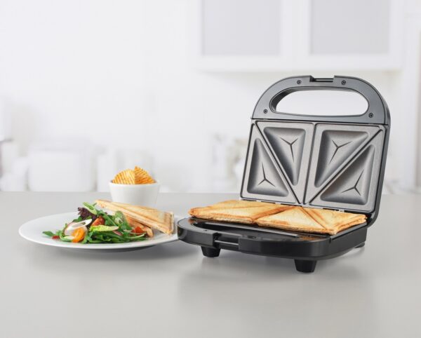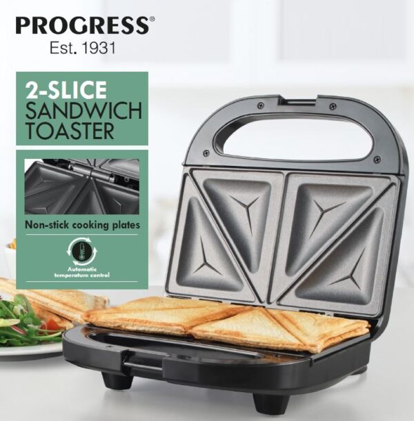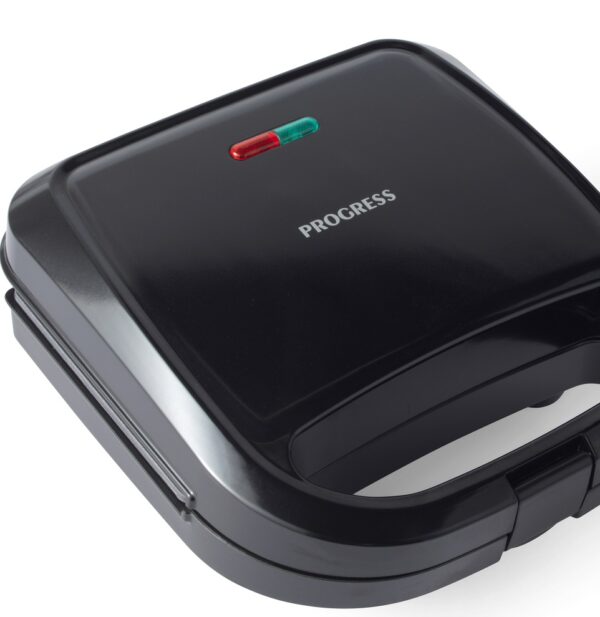 Whip up a toastie with your favourite filling using the Progress 2-slice sandwich toaster with no oil needed for a low-fat alternative. Thanks to the non-stick surfaces, you can easily remove your toast from the cooking plates and effortlessly clean them after use. The indicator lights will alert you when it has reached its optimal temperature while the carry handle offers easy portability and can be easily stored away in your cupboards.