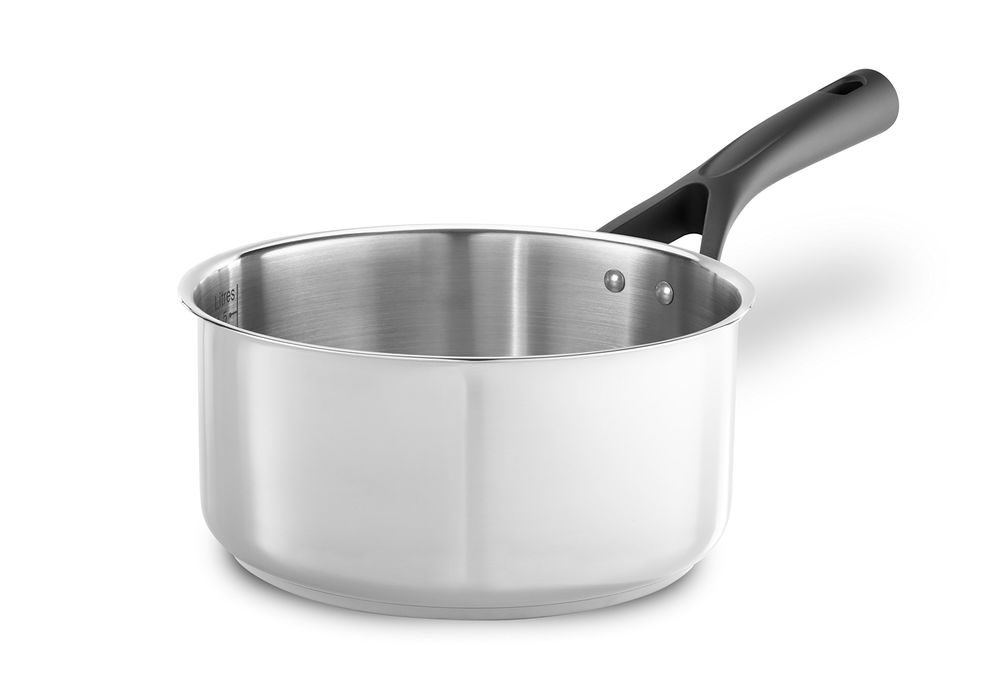 This Expert Touch stainless steel saucepan includes a lid, made from borosilicate glass, which is perfect for straining liquid from your cooking. It also features an internal measuring scale. The small size of the pan makes it suitable for heating sauces, and side dishes. The saucepans feature Y-shaped soft touch handles for comfortable use and a long lasting non-stick coating for durability. Expert Touch saucepans come with a 10 year guarantee and are suitable for use on all hob types including induction.