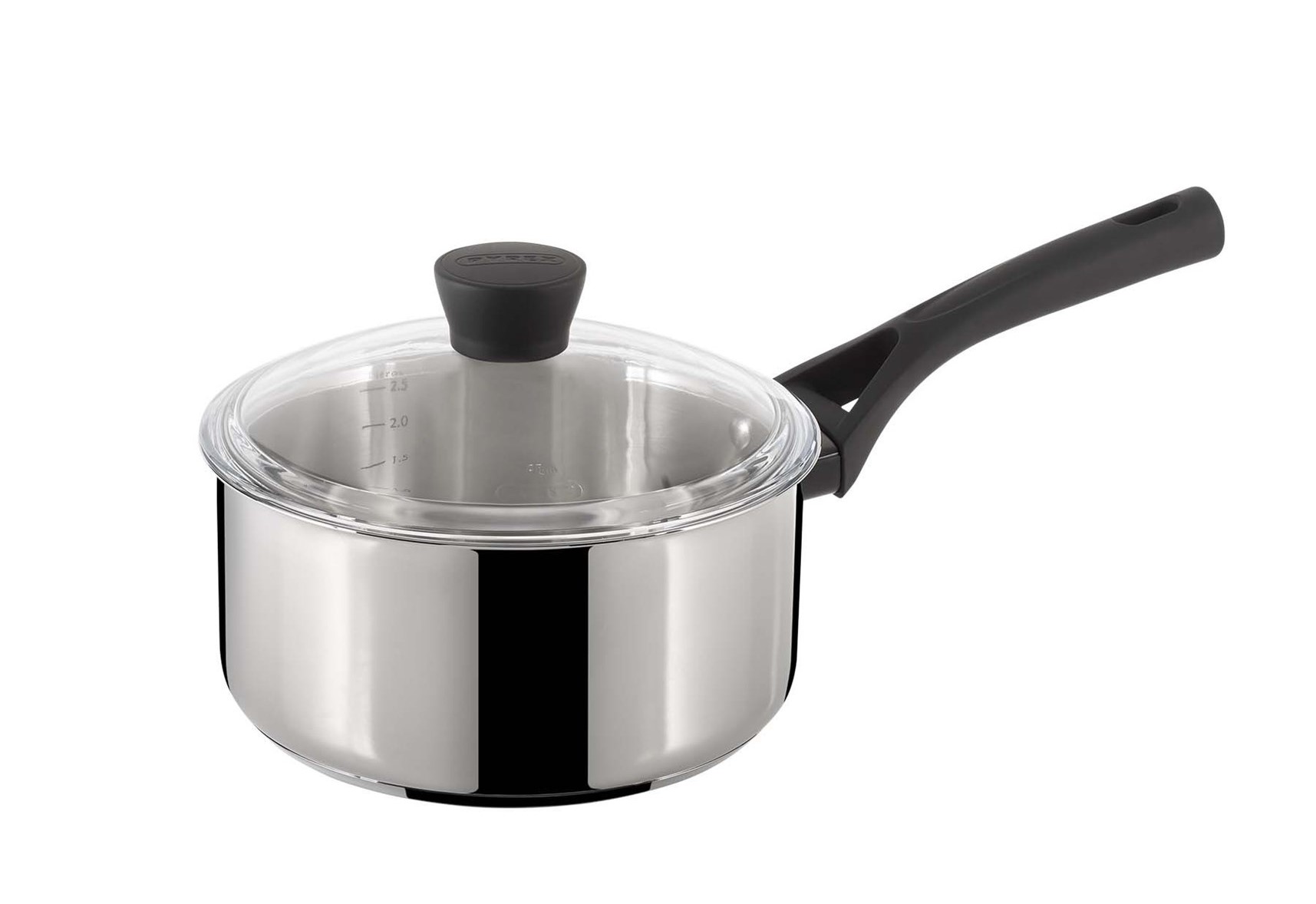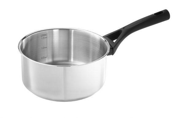 This Expert Touch stainless steel saucepan includes a lid, made from borosilicate glass, which is perfect for straining liquid from your cooking. It also features an internal measuring scale. The small size of the pan makes it suitable for heating sauces, and side dishes. The saucepans feature Y-shaped soft touch handles for comfortable use and a long lasting non-stick coating for durability. Expert Touch saucepans come with a 10 year guarantee and are suitable for use on all hob types including induction.