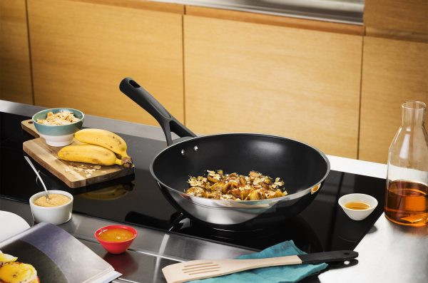 This Expert Touch wok is ideal for quick stir-fry’s. The stainless steel material provides a shiny and stylish exterior, making it the perfect addition to a modern kitchen. A three-layer, ultra-resistant, non-stick coating provides a durable finish and optimal heat distribution for even cooking. The wok features a Y-shaped soft touch handle for comfortable use and comes with a 10 year guarantee. The wok is suitable for use on all hob types including induction.