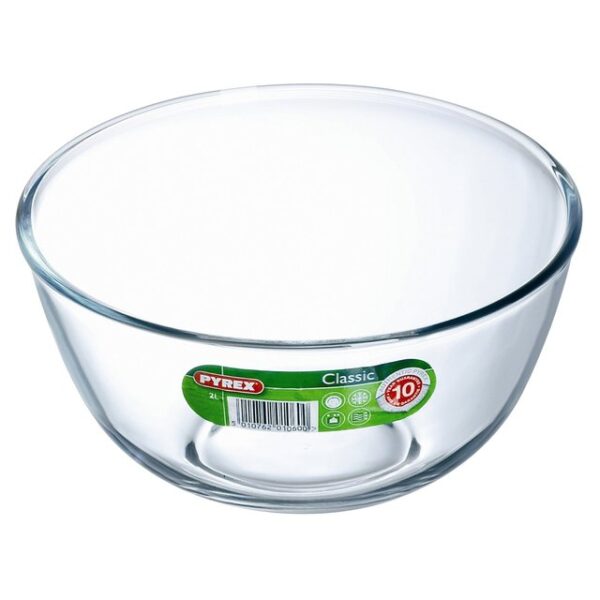 The Pyrex glass mixing bowl is a kitchen classic. Since 1915, Pyrex have been offering a complete solution to all cookware requirements, from preparation to baking and storing. The borosilicate glass is of superior quality than other bowls on the market. The mixing bowls are microwave, dishwasher and freezer safe and also scratch resistant.