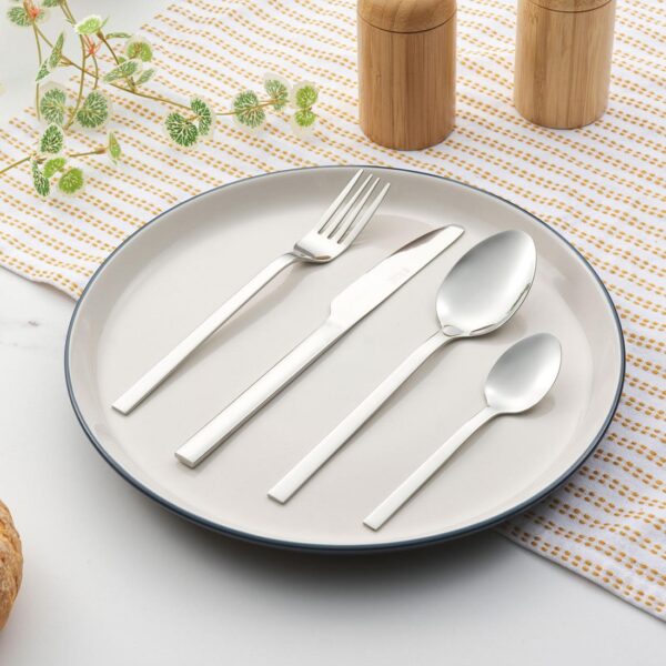 Make your table more appealing with this luxurious Russell Hobbs Vermont cutlery. Ideal as a starter set or for refreshing your dinnerware, this 16 piece set is made from mirror polished stainless steel, with a pleasant weight, this cutlery is delightful to hold and use, which is guaranteed to impress your guests. Practical and durable, this set is perfect for everyday use, while the gorgeous, classic style is sure to give your existing tableware a graceful new look.
