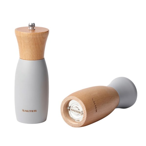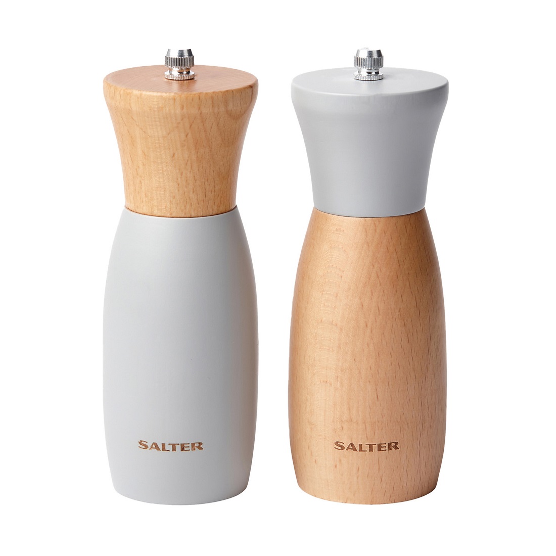This beautiful Salter Salt & Pepper mill set is the perfect addition to any kitchen, bringing both style and convenience. Made from natural beech wood, the set has an elegant design that is both eye-catching and timeless. This mill is incredibly user-friendly with a universal ceramic grinder and adjustable grind, allowing you to customize the output of your seasoning to either fine or coarse. Simply twist to grind your favourite sea salt and peppercorns with ease.