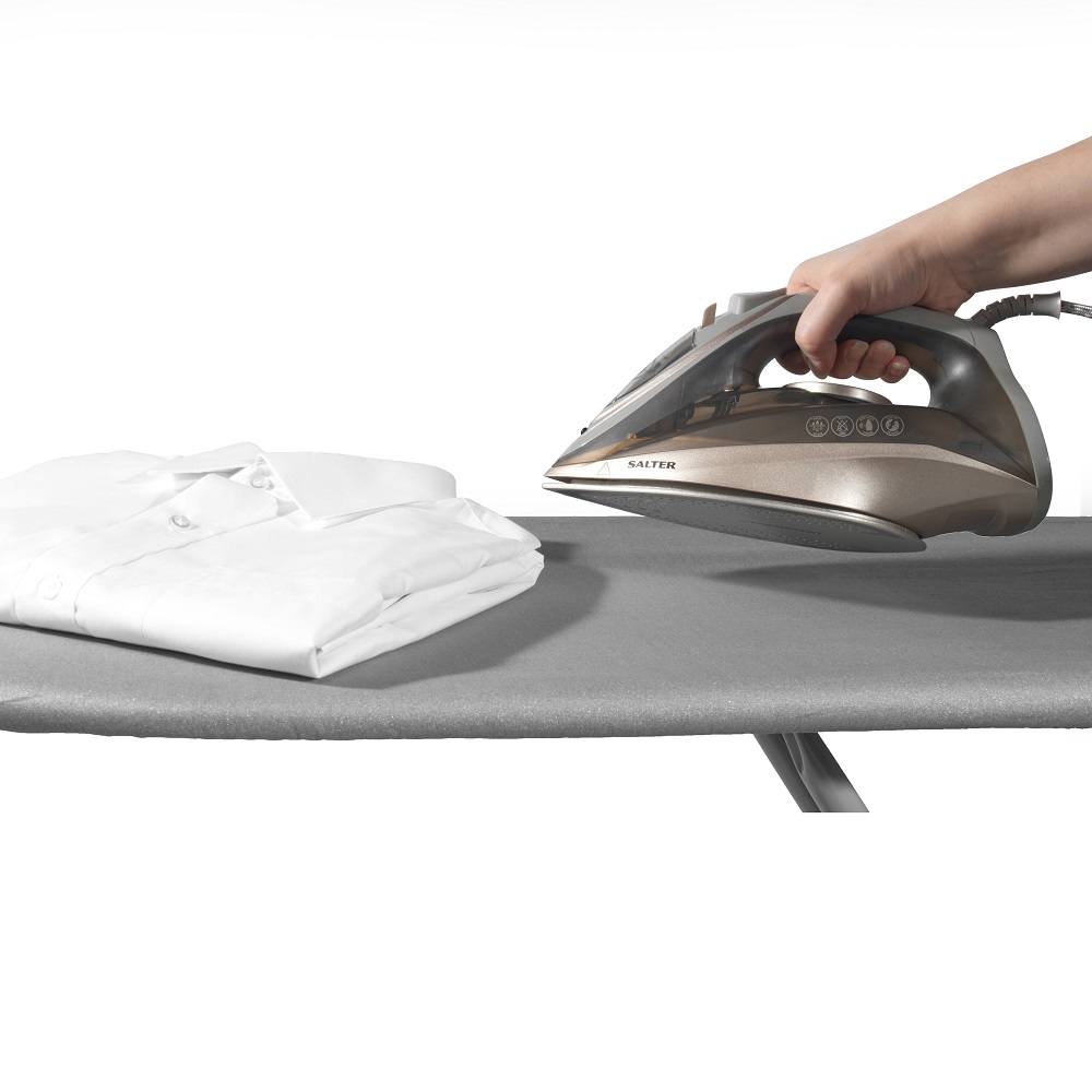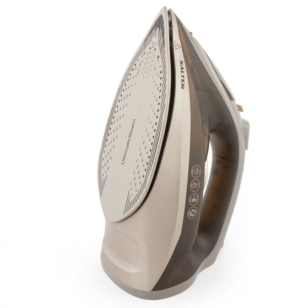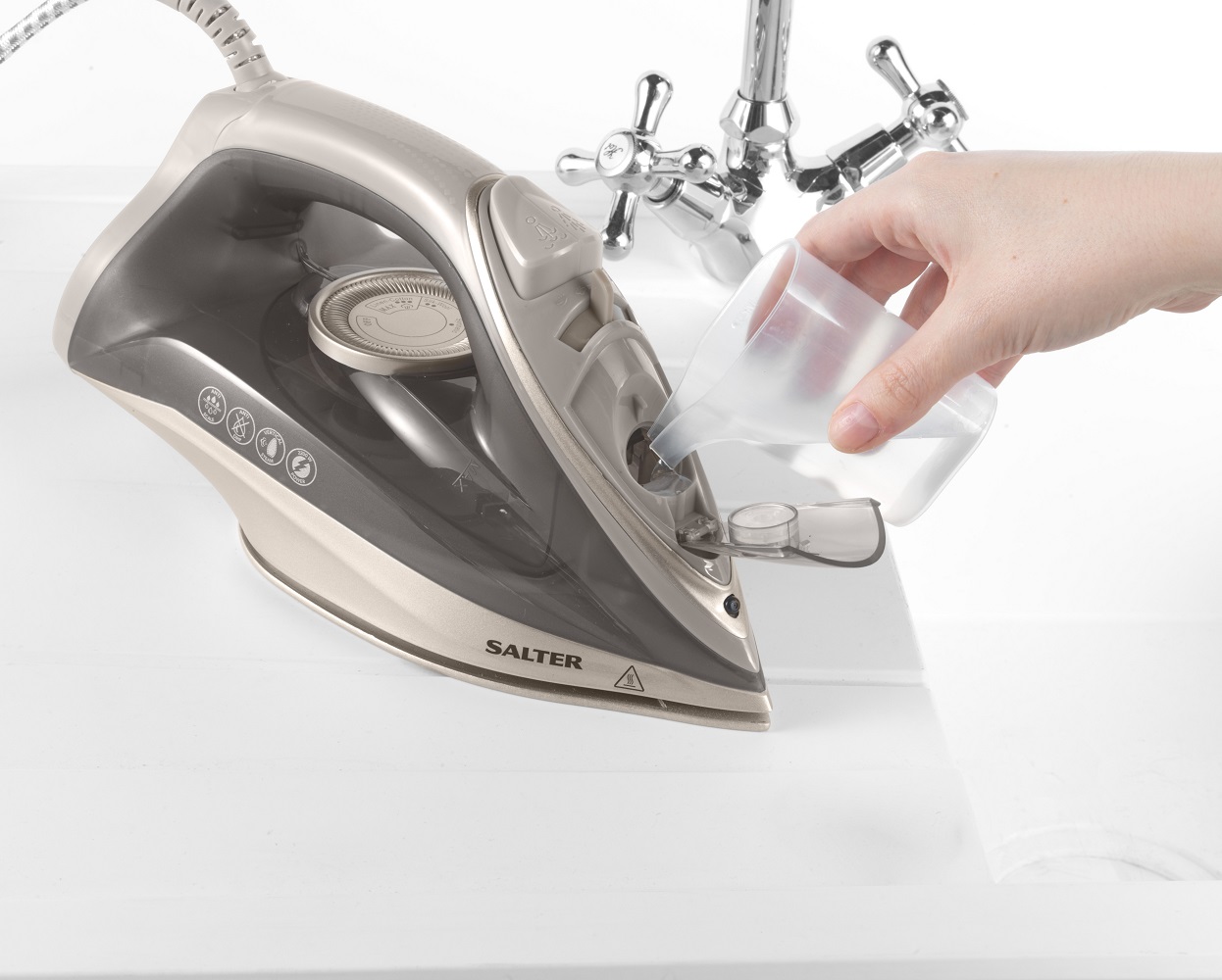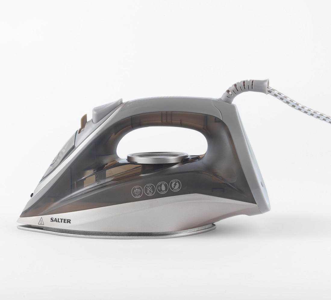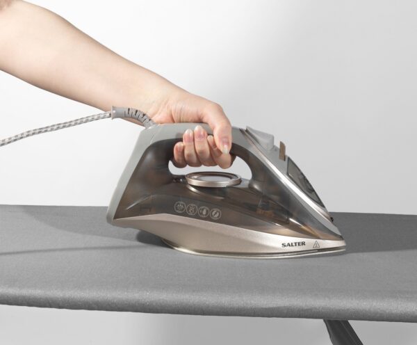 This steam iron from Salter ensures fantastic results with its multi-directional precision ceramic soleplate for smooth gliding, even between buttons and along edges. Equipped with an anti-drip system to prevent spots on clothes and an anti-calc function to maintain performance and prevent build-up. The easy grip comfort handle and continuous steam function with the 100 G/min vertical steam shot makes it perfect for removing the toughest of creases. The 1.90 m power cord and included measuring jug makes it simple to operate.