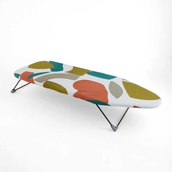 Step up your ironing wherever you go with this convenient ironing board. This Salter Harmony Tabletop Ironing Board is the perfect ironing station for travel, caravans, and vacation homes alike. Its small size, easily fits on countertops, tables, and other narrow spaces. The board is completed with a modern patterned cover, which is machine washable for easy maintenance. The board is lightweight and its foldable legs and hanging hook allow for easy storage and portability.