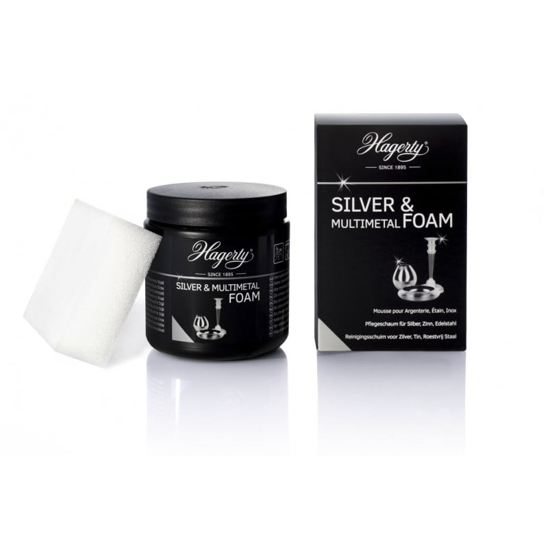 The Hagerty Silver & Metal Foam is a quick-working cleaning foam for silver, silver plate, pewter and stainless steel items. An easy three step process; wash, rinse, dry and it’s shining again. Its quick wash-n-rinse cleaning action is specifically suited for frequently used cutlery and serving pieces which polishes as it washes. Fast and simple to use, combining washing and polishing into one easy operation. Tarnish is rinsed away leaving your silver sparkling.