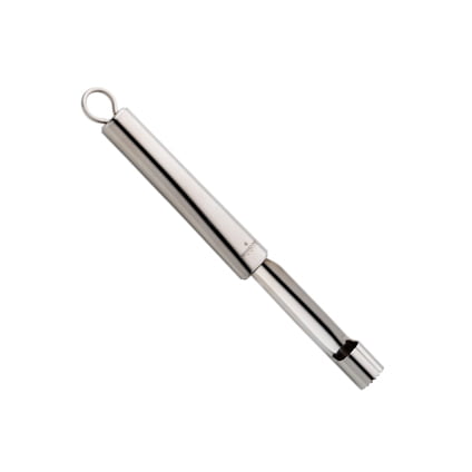 Remove cores from apples and pears in just a few seconds. This durable stainless steel peeler prepares fruit quickly for salads and desserts. The peeler will help reduce the amount of fruit that goes to waste. It has a smooth handle with a comfortable grip to reduce strain. Easy to clean and dishwasher safe.