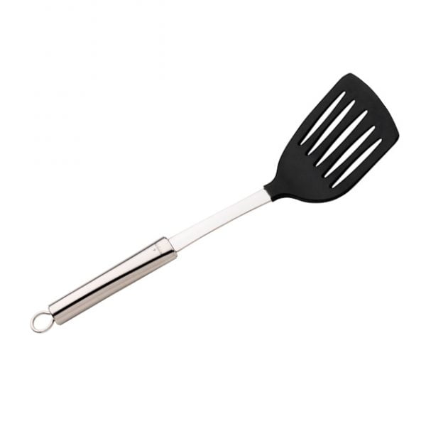 This nylon turner is specifically designed for flipping eggs and meat, filtering oil and keeping it complete without breaking the food. It can be used also for stir-fry. It comes with a long handle so that your hands won’t touch the pan and also features a hanging hole for better storage.