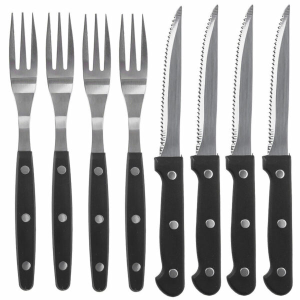 The 8-piece steak cutlery set consists of 4 forks and 4 serrated knives, for easy cutting of meat, pizza and other dishes.