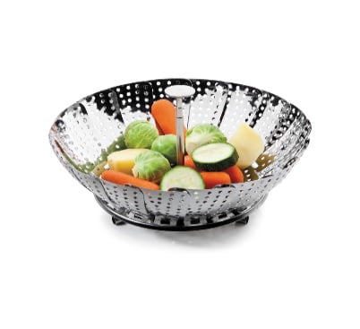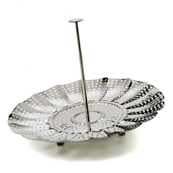 A premium quality vegetable steamer made from high-grade stainless steel. It features an extendable handle, which is also made in stainless steel, which helps in the easy removal of the steamer from your pots & pans. It has a unique design which expands to fit various sizes of pots.
