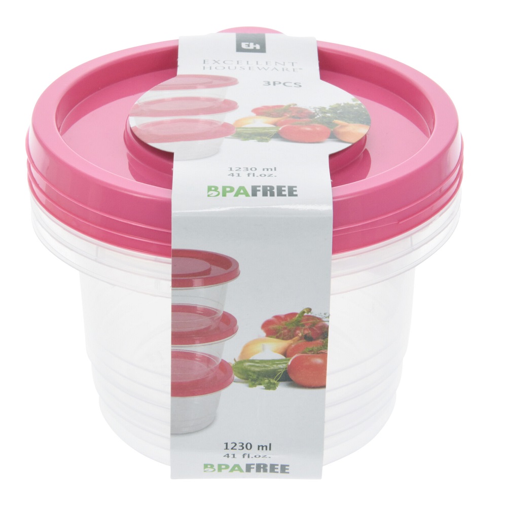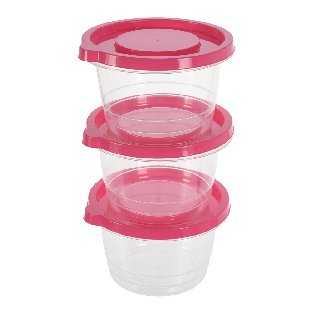 Set of 3 food storage containers made from BPA free material, which is approved for contact with food. The lids allow for stacking on top of each other. The boxes are suitable for the freezer and the microwave as well as dishwasher safe.