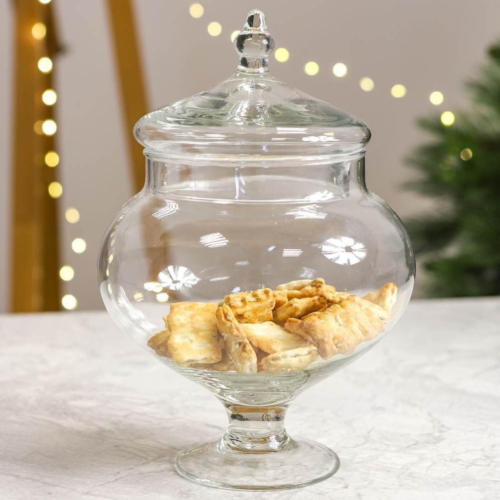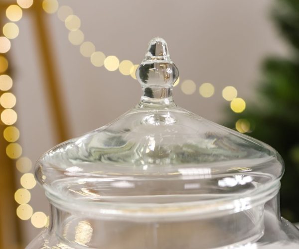 This elegant vase can also serve as a storage jar. The transparent glass allows you to see the contents of the jar, perfect for cookies, fruit, nuts or decorative elements. Its shape provides easy access to the contents. The tight-fitting lid allows the snacks stored inside to remain fresh. It can also be a unique gift for a loved one.