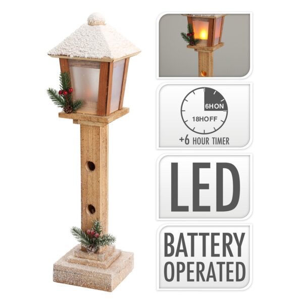 Illuminate your living space with this lovely Victorian Street Lantern. Crafted from high-quality wood, this ornament exudes classic charm and features a flicker effect Flame LED that lends a warm, inviting glow, evoking a nostalgic ambiance reminiscent of Victorian era.