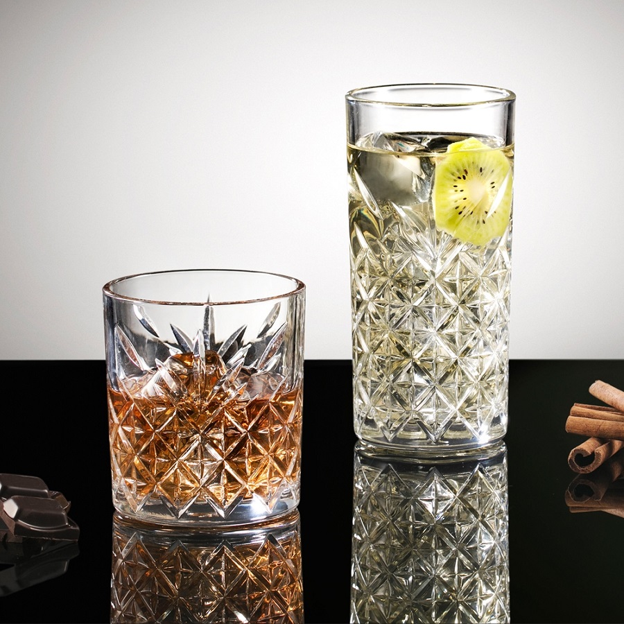 Serve your whisky double in this old school, crystal patterned glass. It is very robust and of high quality. The set of glassware is can be used for water, spirits or juices.
