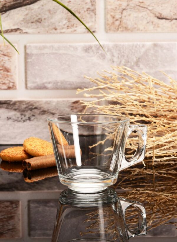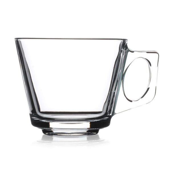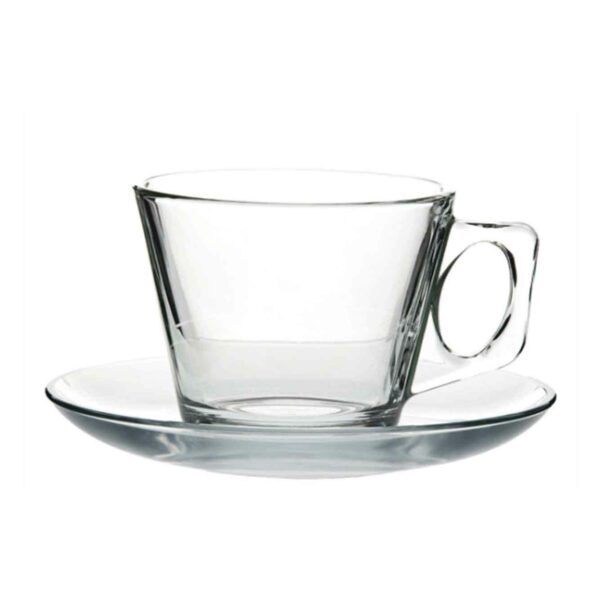 A stylish set of clear tea cups and saucers which are heat resistant, dishwasher safe and also microwave safe. The cup and saucer are made of tempered glass and are suitable for any café, bar or in your home.